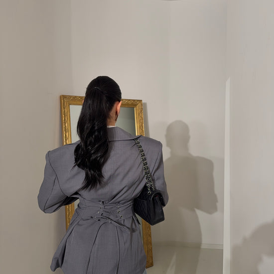 La modella è alta 1,75 ed indossa taglia S M