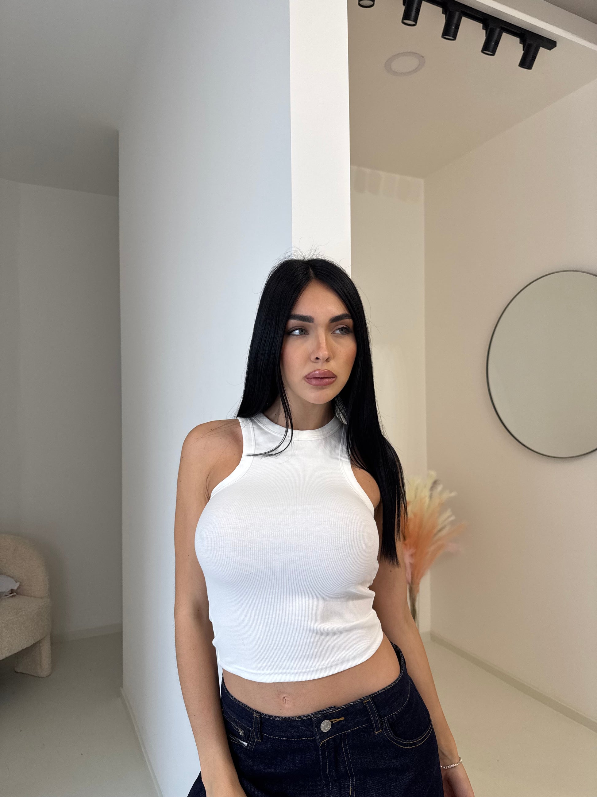 Indossa la nostra Canotta a costine e sentiti comoda e alla moda in ogni colore! Realizzata con materiali di qualità, questa canotta è perfetta per ogni occasione, sia per un look casual che per uno più elegante. Non perderti l'opportunità di avere tutti i colori a tua disposizione!