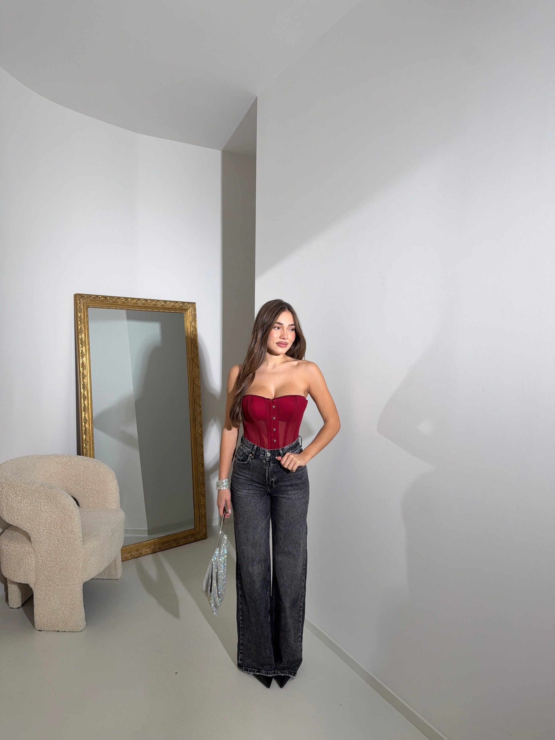 La modella è alta 1.65,indossa taglia S