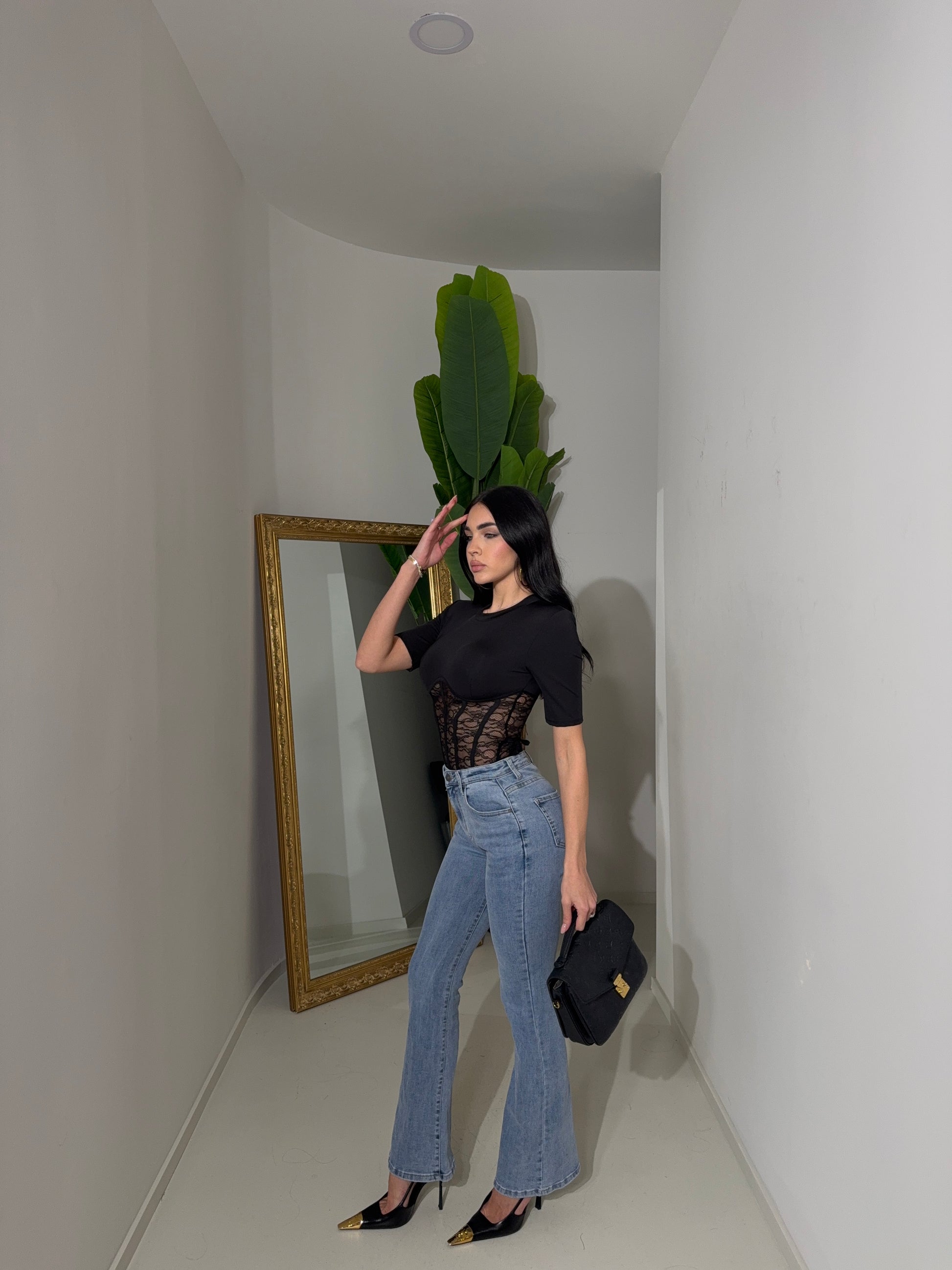 La modella è alta 1,75 ed indossa taglia S