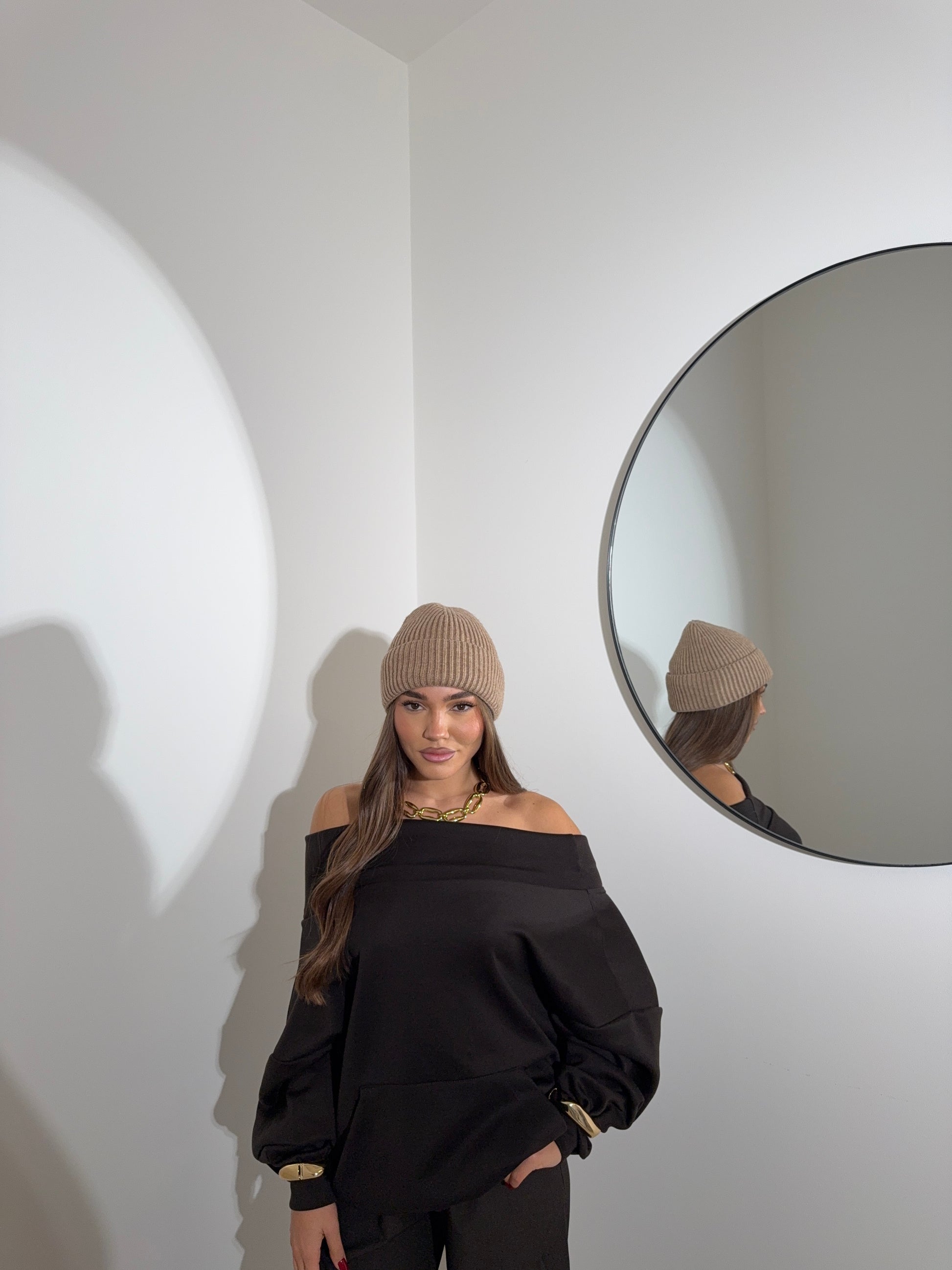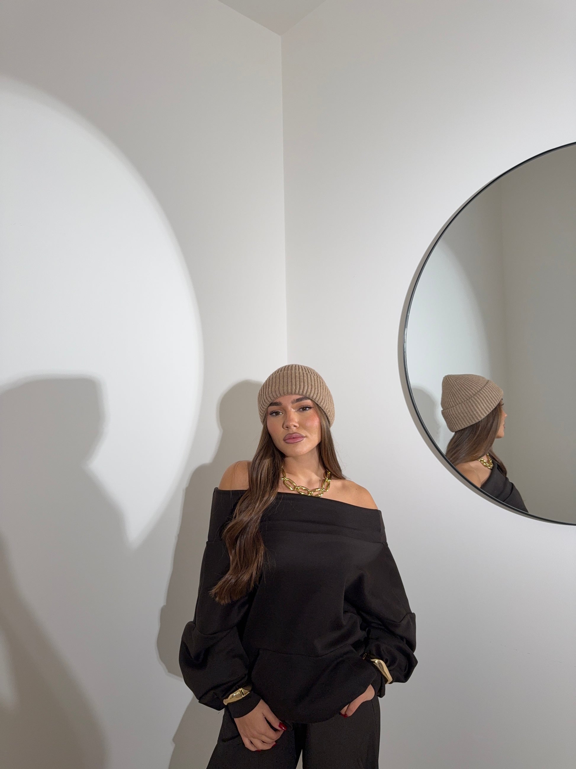 Felpa scollo a barca marrone