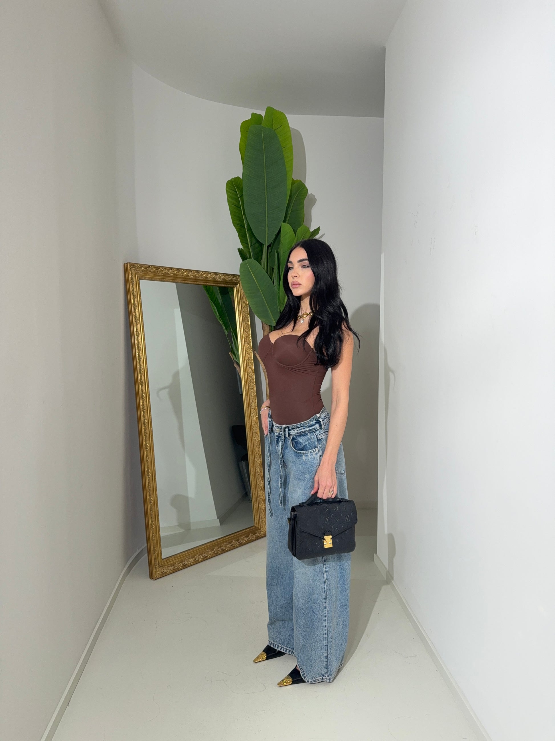 La modella è alta 1,75 ed indossa taglia S