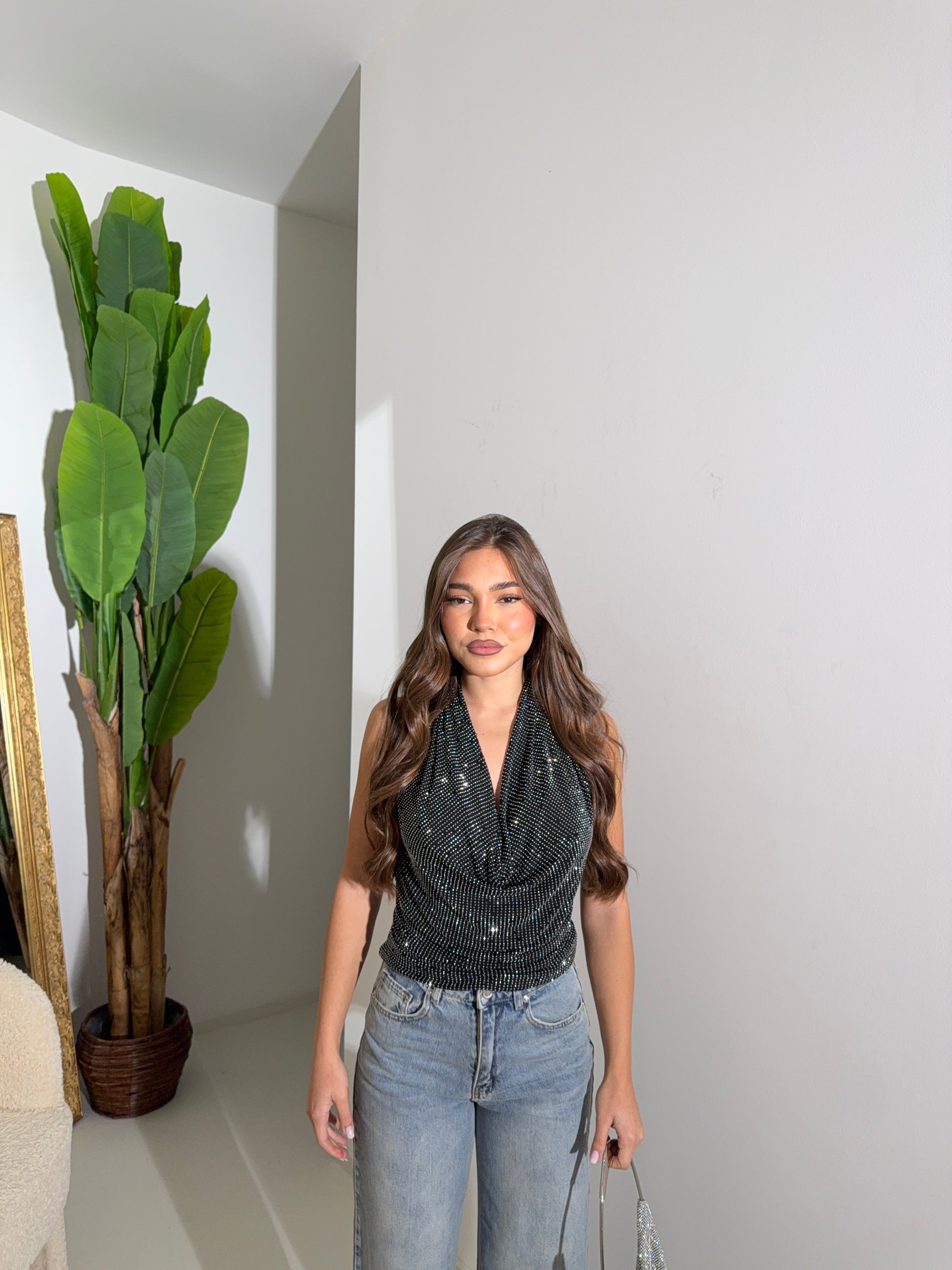La modella é alta 1.65 ,veste taglia S,36 EU