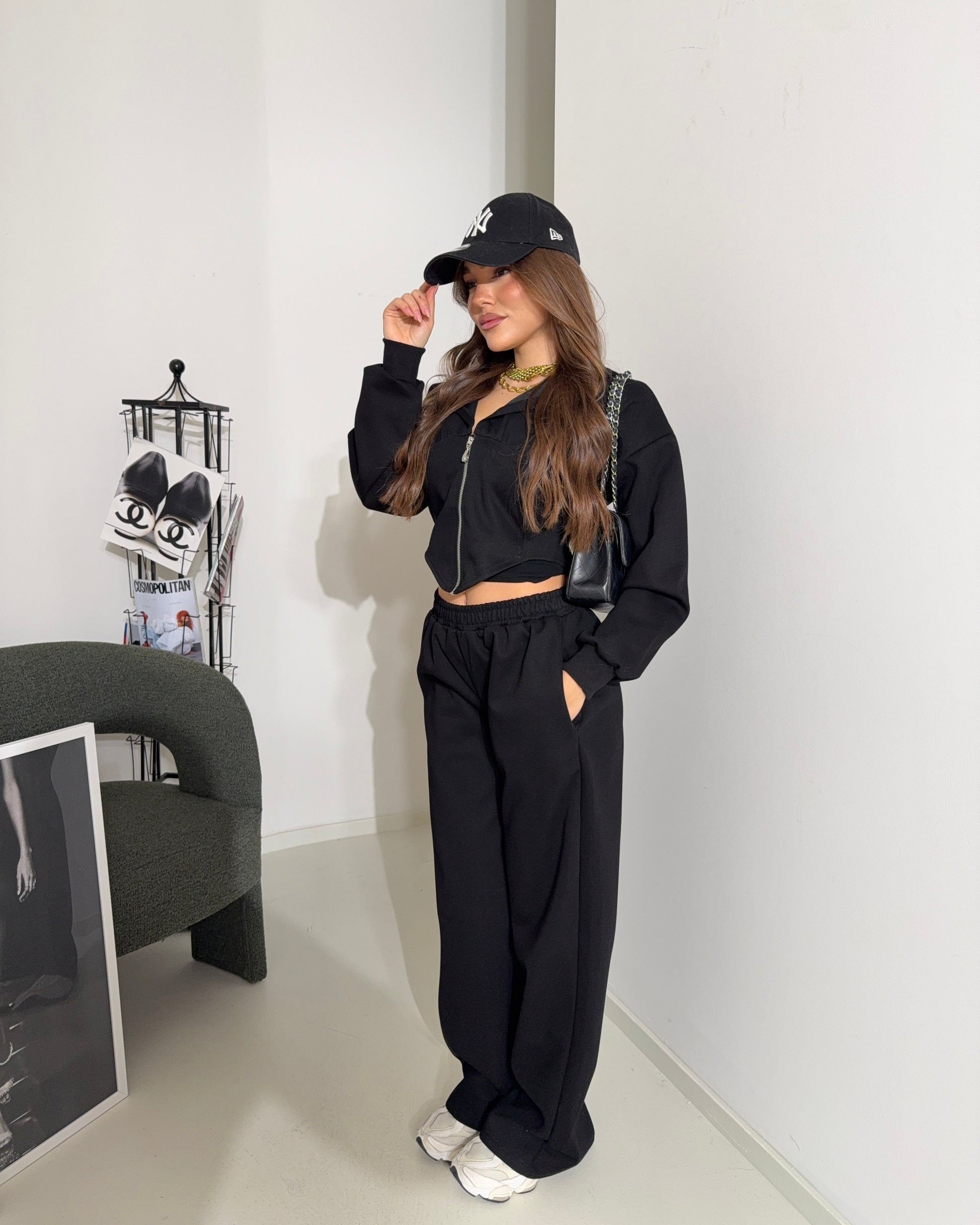 La modella è alta 1,65 ed indossa taglia S M